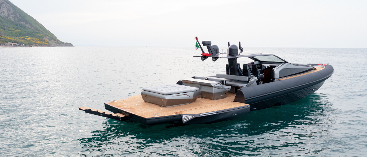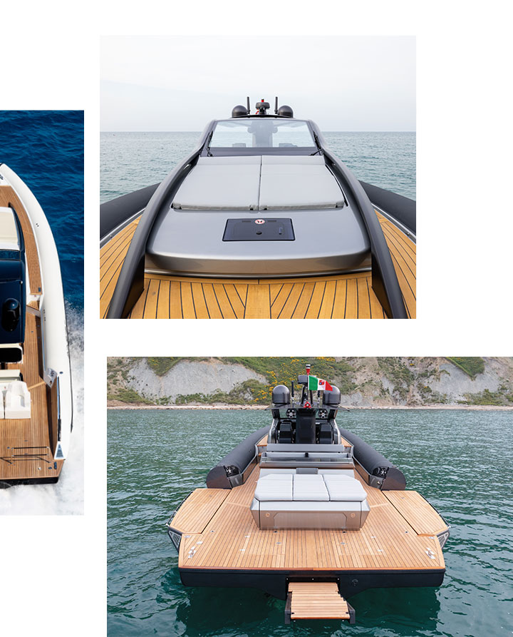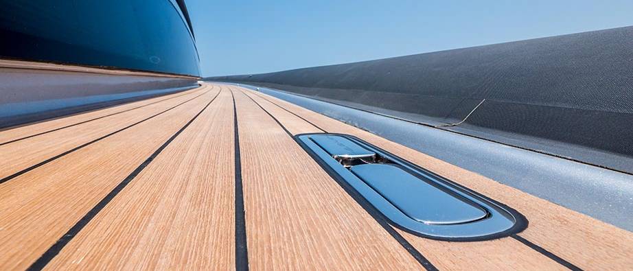 23,4 metri quadrati di beach area e una comoda tavola: un comfort unico per un’imbarcazione da 58 piedi.